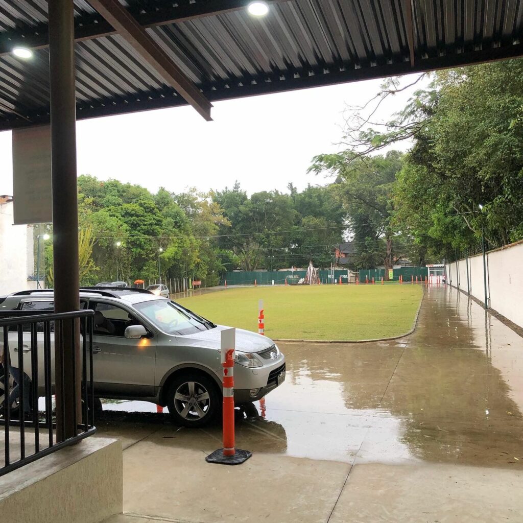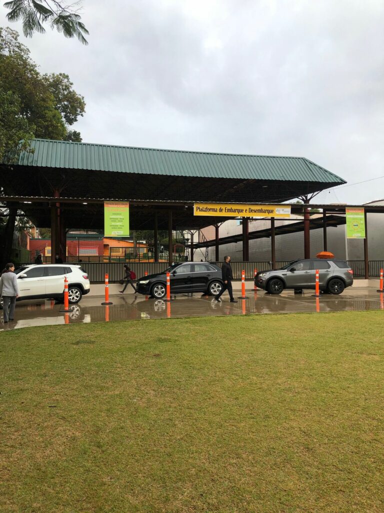 A Subprefeitura de Santo Amaro autorizou o uso da segunda portaria do colégio, na Rua Manoel Pereira Guimarães e nós pudemos inaugurá-la nesse dia tradicional paulistano, uma manhã de garoa.